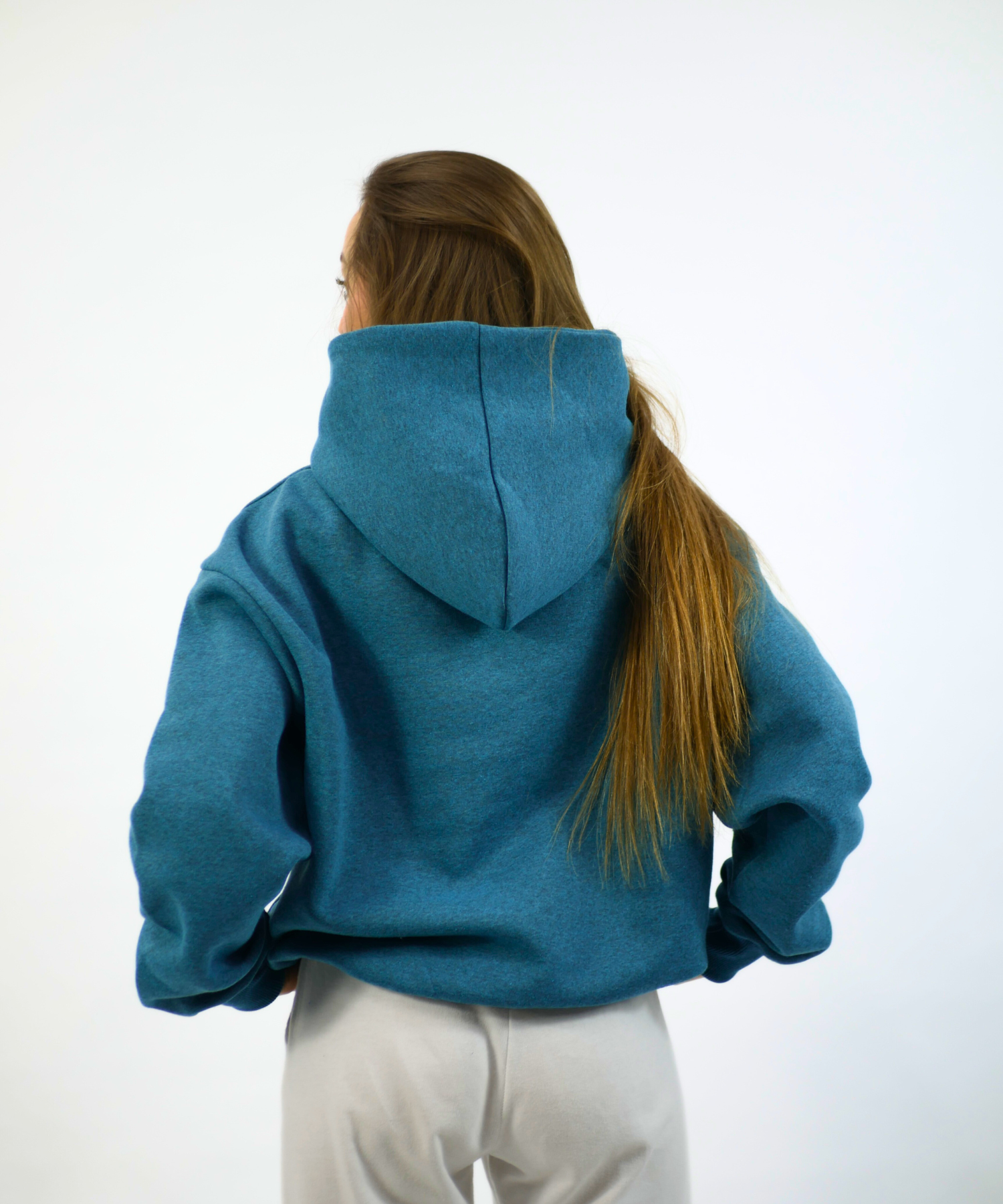 HOODIE BOXY SUPERIOR SOFT FABRIC BLUE MELANGE uszyliśmy tak, abyś mógł w 100% dopasować ją pod własny projekt. Na bluzie nie znajdziesz żadnych metek i innych trwałych oznaczeń z naszym logo. Wszywamy wyłącznie to, co niezbędne, czyli metkę informacyjną oraz tzw. rozmiarek.