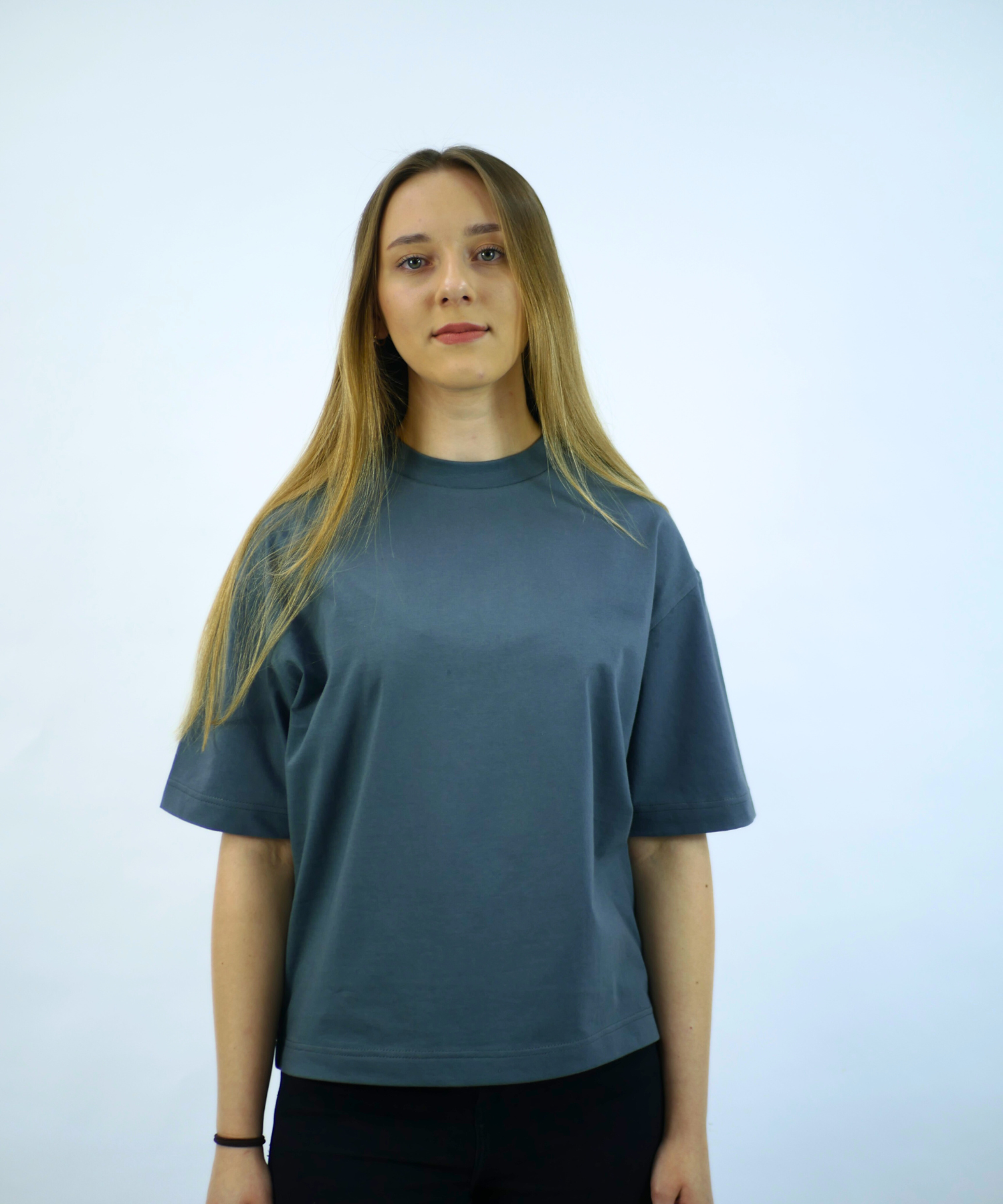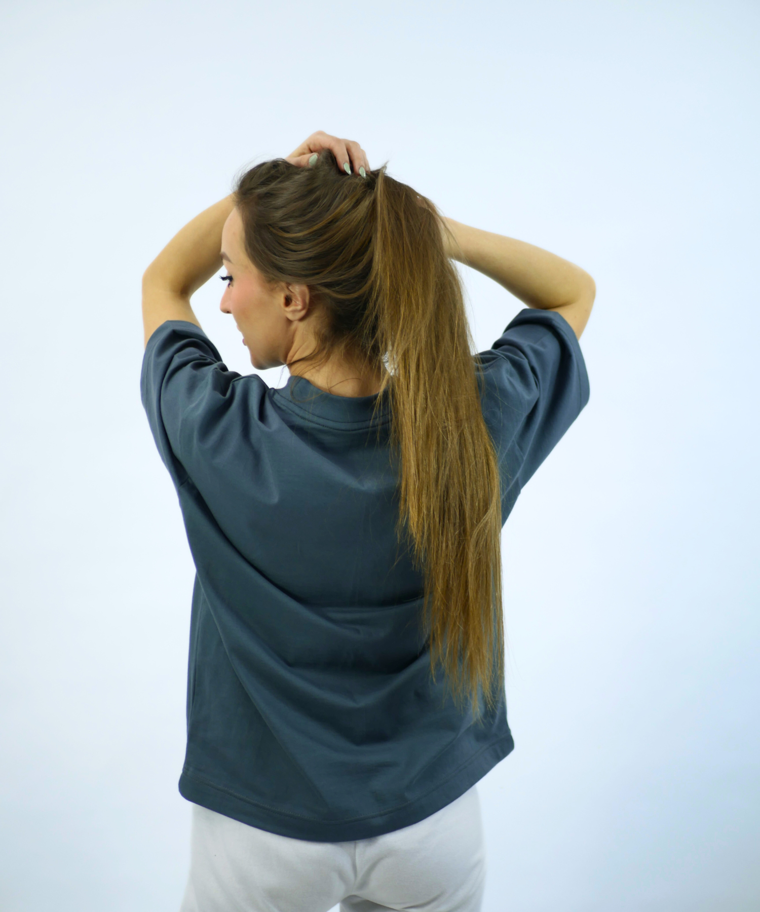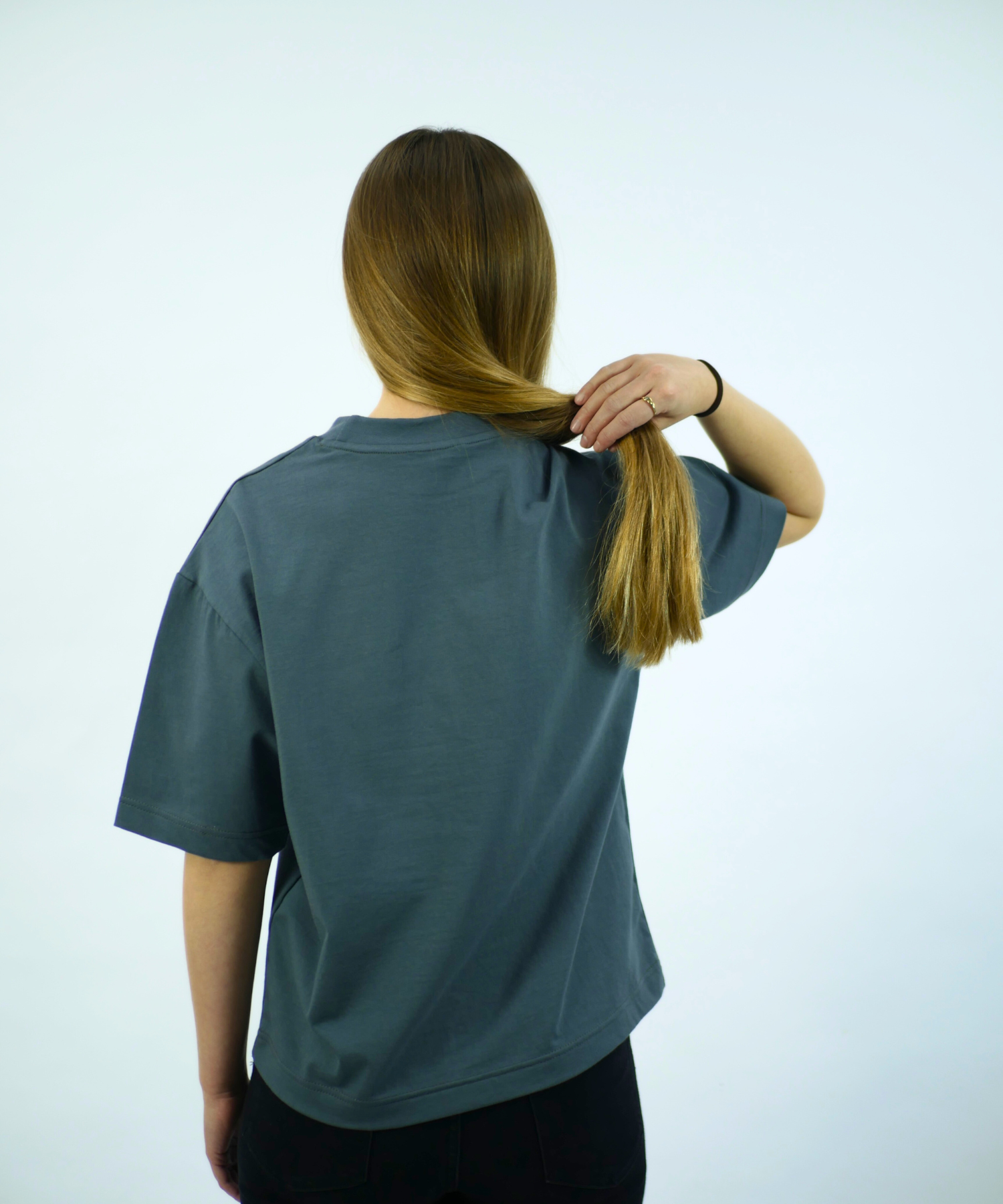 Lekkie wydłużenie w porównaniu do standardu w branży sprawia, że nasz krój BOXY jest wygodniejszy, a przez to bardziej uniwersalny. Doceniają go klienci, którzy lubią ten pudełkowy krój, ale niekoniecznie chcą odsłaniać pępek.